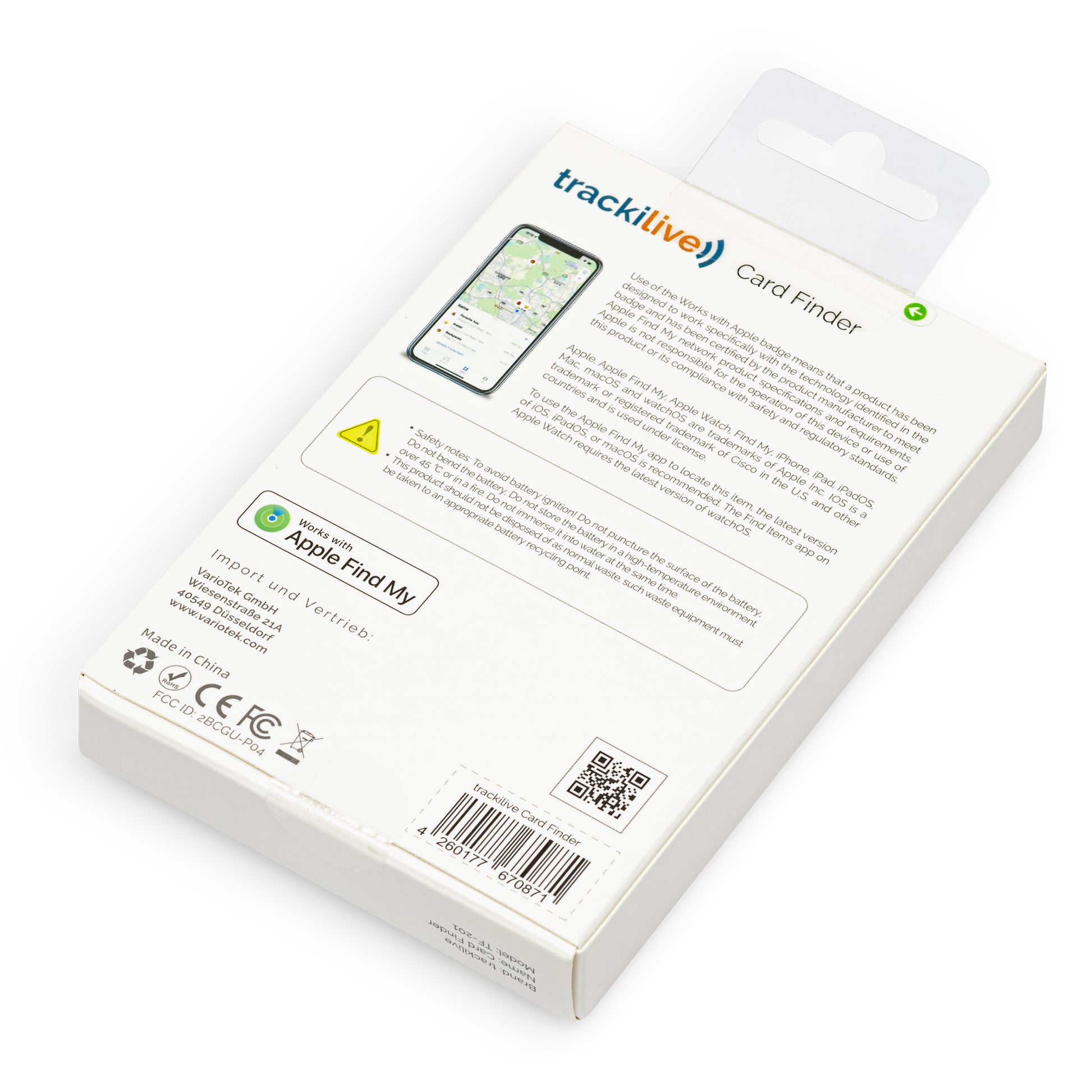 La carte Trackilive est aussi fine qu'une carte de crédit et se glisse parfaitement dans votre portefeuille pour que vous ne la perdiez plus jamais. Avec la carte Trackilive, vous pouvez toujours garder un œil sur vos objets les plus importants et les retrouver rapidement.